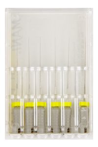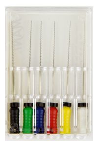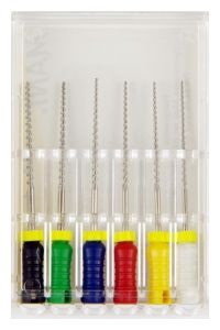 • Ручной режущий стоматологический эндодонтический инструмент со спиральной нарезкой рабочей части. Материал рабочей режущей части — нержавеющая сталь, материал рукоятки – пластик (полибутилентерефталат).