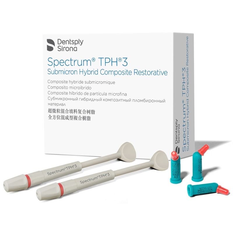 Спектрум - рентгеноконтрастный фотополимеризуемый гибридный композит со сверхмелким размером частиц для изготовления реставраций во фронтальной и жевательной группах зубов. Композит выпускается в дозированных компьюлах и традиционных шприцах, и позволяет точно подбирать оттенки по шкале Vita ® .