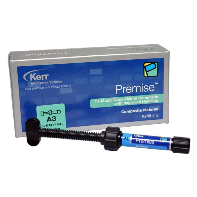 Premise ™  является одним из самых высоконаполненных композитов на рынке (наполненность 84 %). Это позволяет его успешно использовать как фронтальных зубах, где снижается риск сколов, так на жевательных зубах, где будет наблюдаться низкая стираемость композита со временем. Благодаря трем типам наполнителей Premise ™  обладает высоко эстетическими свойствами, великолепно полируется, имеет высокую механи ческую прочность и сниженную полимеризационную усадку.