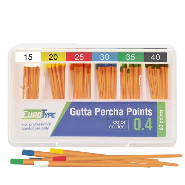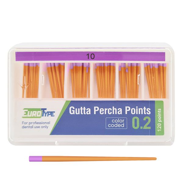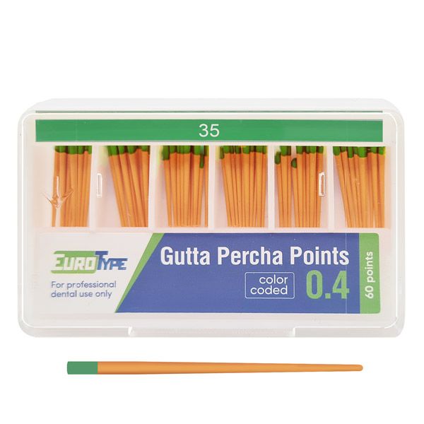 Гуттаперчевые штифты для пломбирования корневых каналов различными методами (латеральная конденсация, вертикальная конденсация, метод одного штифта). Изготовлены из натурального каучука, надежны и безопасны. Каждый штифт промаркирован в соответствии с ISO. Размеры гуттаперчевых штифтов EuroType соответствуют размерам эндодонтических инструментов. Штифты упакованы в удобные пластиковые кассеты.