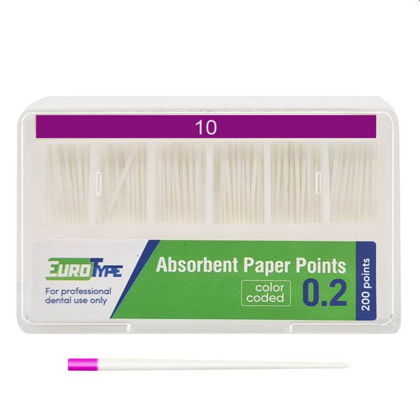 • Бумажные абсорбирующие штифты EuroType являются стерильными и  поставляются в пластиковой кассете.