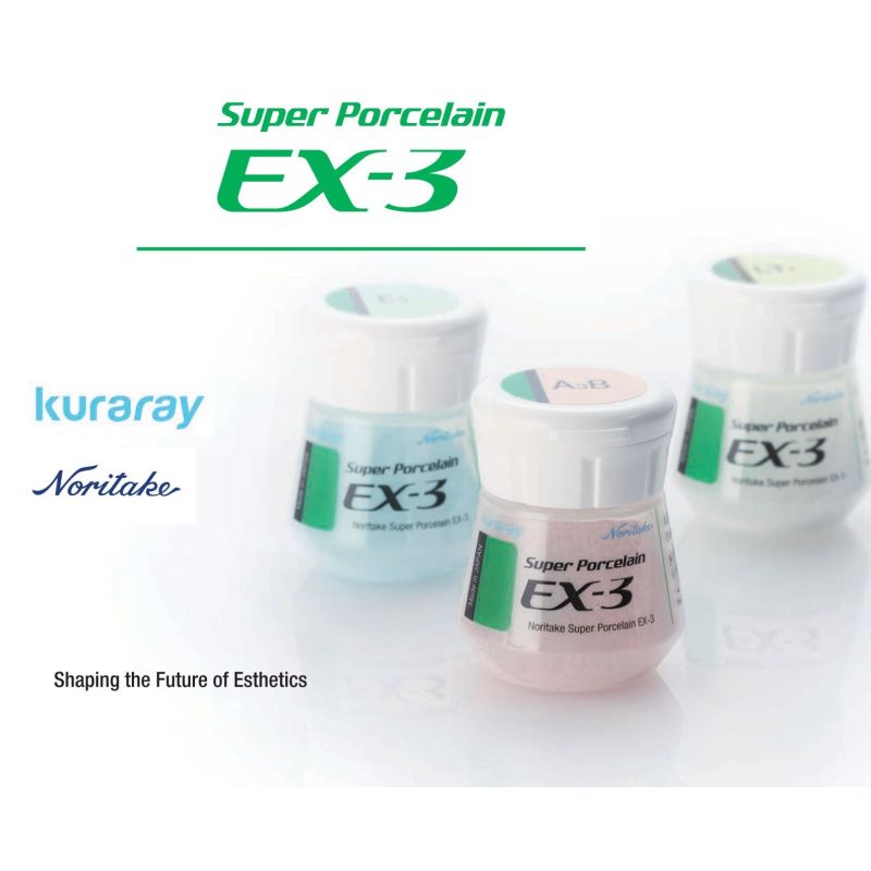 Super Porcelain EX-3 Noritake - цифра “3” в означает 3 свойства, которые делают фарфоры этой группы самыми высококачественными из всех стоматологических фарфоров, предлагаемых современным рынком. Этими свойствами являются: очень высокая прочность, стойкость к позеленению, вызываемому серебром, и идеальные флюоресцентные свойства.