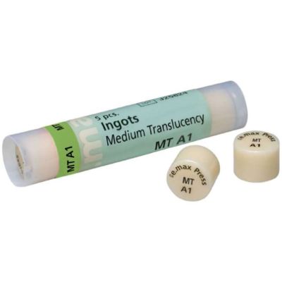 Новые заготовки со средней прозрачностью МТ (medium translucency) располагаются между заготовками LT и HT. Они используются при изготовлении реставраций, которые требуют больше прозрачности по сравнению с реставрациями LT и больше светлоты, чем у реставраций HT. Они превосходно подходят для работы техникой окрашивания или Cut-back. Заготовки IPS e.max Press MT выпускаются в двух размерах. Цвета B1, BL4 и BL3 заменяют собой заготовки IPS e.max Press Value в цветах V1, V2 и V3. Кроме того, выпускаются заготовки IPS e.max Press MT в цветах BL2, A1, A2 и A3.