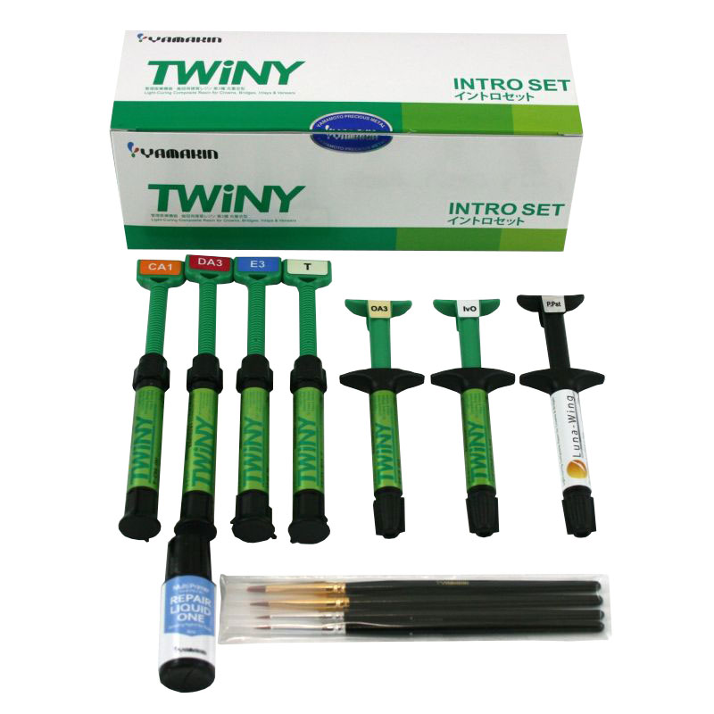 TWiNY - это свето и тепло отверждаемый, керама-кластерный композитный материал, созданный на основе нано-технологий. Используя новейшую технологию неорганического наполнителя (Керама-Кластерный наполнитель), TWiNY обеспечивает отличное сочетание прочности, простоты и эстетического вида материала. TWiNY был сертифицирован ISO 10993, Biological Evaluation of Medical Devices. Кроме того проводились исследования, используя различные тесты безопасности материала; биосовместимость материала была подтверждена на кафедре стоматологии и челюстно-лицевой хирургии, Кохи медицинской школы, Университета Кохи, Япония.