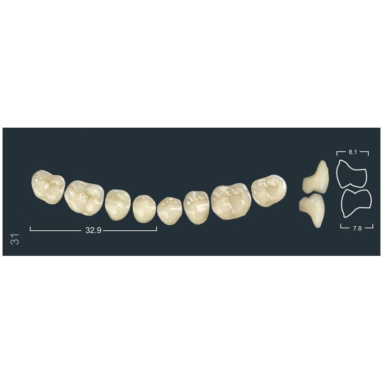 Зубы Ivocryl - жевательные нижние, фасон 31, цвет A3 (8шт.), Ivoclar