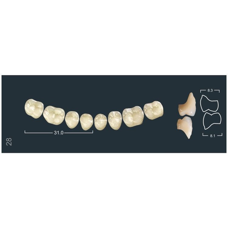 Зубы Ivocryl - жевательные нижние, фасон 28, цвет A3 (8шт.), Ivoclar