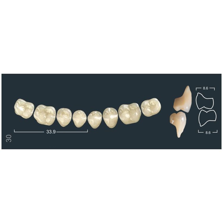 Зубы Ivocryl - жевательные нижние, фасон 30, цвет A2 (8шт.), Ivoclar