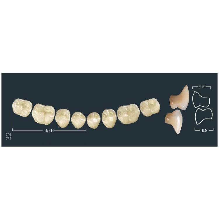 Зубы Ivocryl - жевательные нижние, фасон 32, цвет A2 (8шт.), Ivoclar
